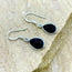 Louisa design 925 sterling silver hook earrings set with polished tear drop cut black onyx cabochon