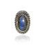 Osanna 925 sterling silver statement ring set with a large oval polished labradorite cabochon with pretty surrounding outer detail.